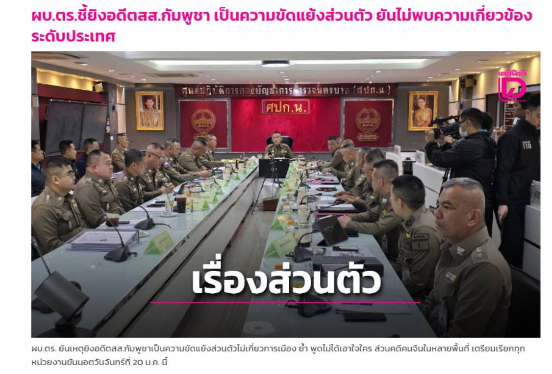 ក្រុមមេប៉ូលិសថៃបានកោះប្រជុំមួយកាលពីថ្ងៃទី១៥ ខែមករា ឆ្នាំ២០២៥ លើកឡើងពីករណីបាញ់សម្លាប់អតីតតំណាងរាស្ត្រគណបក្សប្រឆាំងនៅកម្ពុជា លោក លឹម គឹមយ៉ា ថា ជាជម្លោះផ្ទាល់ខ្លួនមិនពាក់ព័ន្ធនឹងរឿងនយោបាយ និងកម្រិតប្រទេសទេ ហើយបាន និងកម្រិតប្រទេសទេ បញ្ជាក់ថា ប៉ូលិសធ្វើការមិនព្យាយាមផ្គាប់ចិត្តអ្នកណាម្នាក់ឡើយ ។