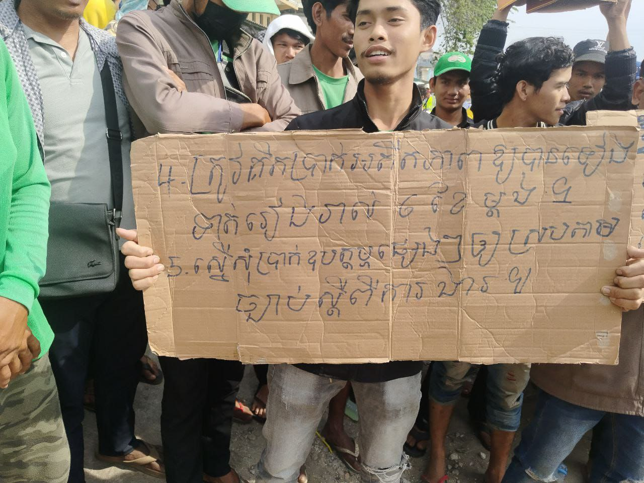 ភ្នំពេញ ៖ កម្មករក្រុមហ៊ុន៨០០ស៊ុបពើ (ក្រុមប្រមូលសំរាម) បានប្រមូលផ្ដុំគ្នាតវ៉ា នៅមុខក្រុមហ៊ុន៨០០ស៊ុបពើលើចិញ្ចើមផ្លូវមហាវិថីឈ្នះៗ ភូមិ ផ្សារលិច សង្កាត់ ព្រែកព្នៅ ខណ្ឌ ព្រែកព្នៅ រាជធានីភ្នំពេញ នៅព្រឹកថ្ងៃទី២០ ខែមករា ឆ្នាំ២០២៥ នេះ។