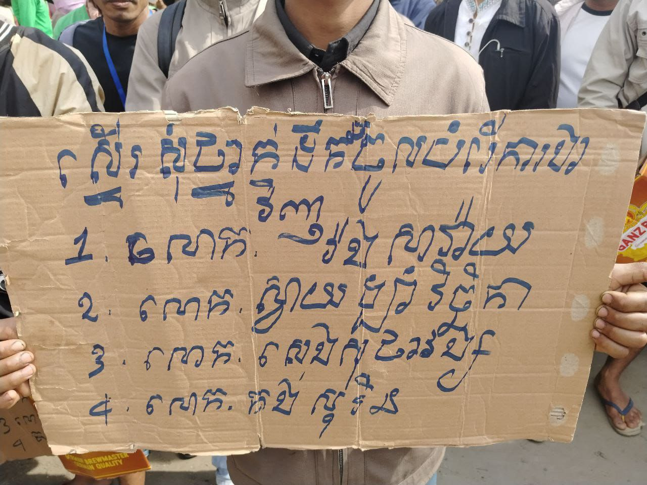 ការតវ៉ារបស់កម្មករក្រុមហ៊ុន៨០០ស៊ុបពើ ក្នុងគោលបំណងស្នើសុំ/ស្នើសុំអោយបុគ្គលិកចំនួន៤នាក់ដែលបានបញ្ឈប់ចូលធ្វើការនៅក្រុមហ៊ុន៨០០ស៊ុបពើវិញដែលមានឈ្មោះដូចខាងក្រោម