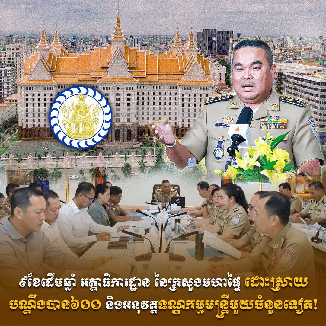 ឯកឧត្តម ឧត្តមសេនីយ៍ឯក ឯម វិចិត្រ អគ្គាធិការ នៃអគ្គាធិការដ្ឋាន ក្រសួងមហាផ្ទៃ បានឱ្យដឹងថា ក្នុងចំណោមបណ្តឹងទាំង៦០០ ដែលបានដោះស្រាយនោះ រួមមាន ផ្នែករដ្ឋបាល មាន២៨៧បណ្ដឹង និងផ្នែកនគរបាល មាន៣១៣បណ្ដឹង។ លទ្ធផលនេះ ស្មើនឹង៧៧ភាគរយ នៃបណ្តឹង សរុបចំនួន ៧៧៥បណ្ដឹង។