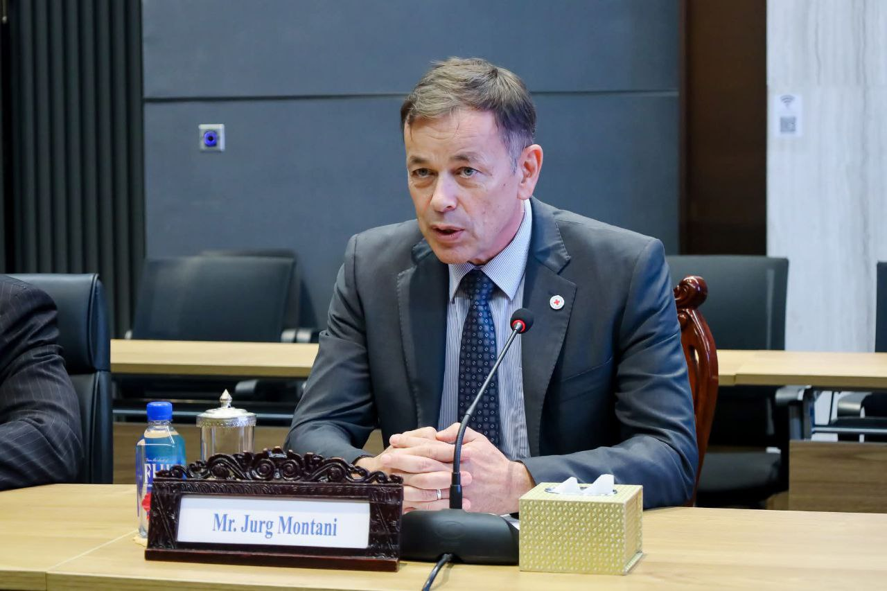 ភ្នំពេញ ៖ ដោយមានការអនុញ្ញាតិ ពីឯកឧត្តមនាយឧត្តមសេនីយ៍ ទៀ សីហា ឧបនាយករដ្ឋមន្រ្តី រដ្ឋមន្រ្តីក្រសួងការពារជាតិកម្ពុជា ឯកឧត្តម រ៉ាត់ ដារ៉ារត្ន អនុរដ្ឋលេខាធិការក្រសួងការពារជាតិ បានជួបពិភាក្សាការងារជាមួយលោកJurg Montani ប្រធានប្រតិភូគណៈកម្មាធិការអន្តរជាតិនៃកាកបាទក្រហមប្រចាំភូមិភាគ នាថ្ងៃទី១៤ ខែតុលា ឆ្នាំ២០២៥នេះ នៅទីស្តីការក្រសួងការពារជាតិកម្ពុជា។