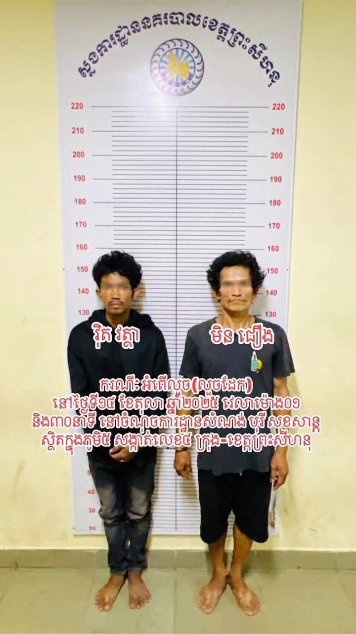៣-ករណីលួចខ្សែភ្លើង (៨ តុលា ២០២៥) ឃាត់ខ្លួនជនសង្ស័យ ២នាក់ ជនជាតិខ្មែរ មានវត្ថុតាងជាច្រើន រួមទាំងម៉ូតូដែលប្រើសម្រាប់ប្រព្រឹត្តអំពើល្មើស ។