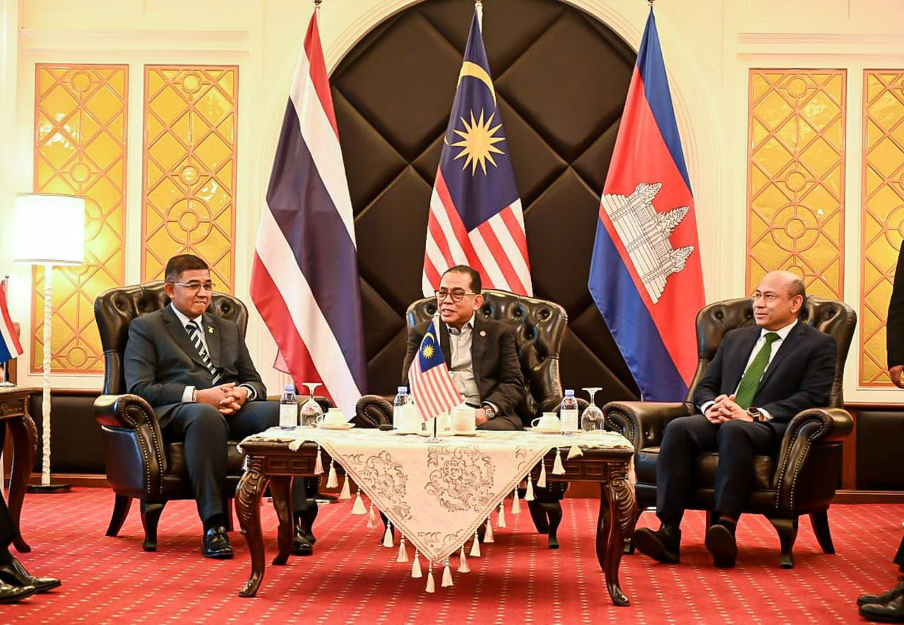 បន្ទាប់ពីបញ្ចប់កិច្ចប្រជុំពិសេសលើកទី២ នៃគណៈកម្មាធិការព្រំដែនទូទៅ កម្ពុជា-ថៃ (GBC) ដែលបានប្រព្រឹត្តទៅនៅថ្ងៃទី២៣ ខែតុលា ឆ្នាំ២០២៥ កាលពីព្រឹកមិញនេះ ឯកឧត្តម នាយឧត្តមសេនីយ៍ ទៀ សីហា ឧបនាយករដ្ឋមន្រ្តី រដ្ឋមន្រ្តីក្រសួងការពារជាតិ នៃព្រះរាជាណាចក្រកម្ពុជា បានចូលរួមជំនួបត្រីភាគីរវាង ឯកឧត្តម Mohamed Khaled Bin Nordin រដ្ឋមន្ត្រីក្រសួងការពារជាតិម៉ាឡេស៊ី និងឯកឧត្តម នាយឧត្តមសេនីយ៍ ណាត់ថាក់ផុន ណាកផានីត រដ្ឋមន្រ្តីក្រសួងការពារជាតិ នៃព្រះរាជាណាចក្រថៃ។