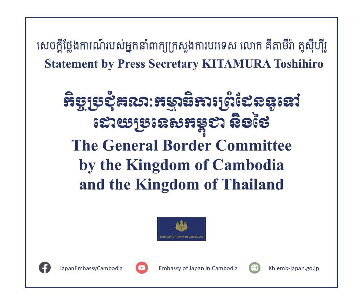 ៣. ភាពប្រសើរឡើងវិញនៃទំនាក់ទំនងរវាងប្រទេសកម្ពុជា និងថៃ មានសារៈសំខាន់សម្រាប់ស្ថិរភាព និងការអភិវឌ្ឍក្នុងតំបន់ទាំងមូល។ រដ្ឋាភិបាលជប៉ុនសង្ឃឹមថា ប្រទេសទាំងពីរនឹងបន្តគោរពតាមកិច្ចព្រមព្រៀងបទឈប់បាញ់ ហើយភាពតានតឹងរវាងប្រទេសទាំងពីរនឹងត្រូវបានបន្ធូរបន្ថយដោយសន្តិវិធីតាមរយៈការសន្ទនា។ ក្នុងន័យនេះ ជប៉ុននឹងបន្តខិតខំប្រឹងប្រែង ដើម្បីជំរុញការអនុវត្តយ៉ាងប្រាកដប្រជានូវកិច្ចព្រមព្រៀងបទឈប់បាញ់ និងបន្ថយភាពតានតឹងដោយសហការជាមួយប្រទេសពាក់ព័ន្ធនានា។