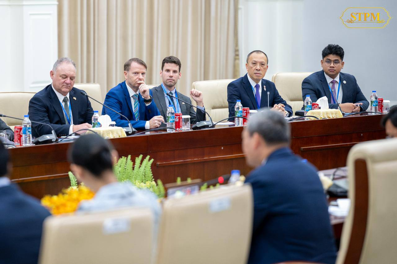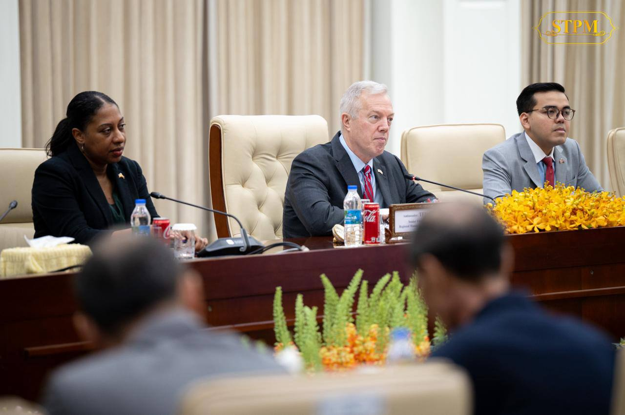 ភ្នំពេញ ៖ សម្តេចមហាបវរធិបតី ហ៊ុន ម៉ាណែត នាយករដ្ឋមន្រ្តី នៃព្រះរាជាណាចក្រកម្ពុជា បានអនុញ្ញាតឱ្យឯកឧត្តម Ted Osius (ឯកអគ្គរដ្ឋទូតអាម៉េរិកចូលនិវត្តន៍) អនុប្រធានជាន់ខ្ពស់ និងជានាយកគ្រប់គ្រងប្រចាំតំបន់នៃក្រុមប្រឹក្សាធុរកិច្ចសហរដ្ឋអាម៉េរិក-អាស៊ាន (US-ABC) និងគណៈប្រតិភូ ចូលជួបសម្តែងការគួរសម និងពិភាក្សាការងារ នៅវិមានសន្តិភាព នាព្រឹកថ្ងៃទី០២ ខែធ្នូ ឆ្នាំ២០២៥។